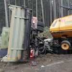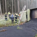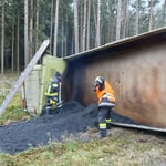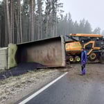 Am Montag dem 11.11.2024 wurden wir um 07:22 Uhr zu einer LKW-Bergung auf die L76, km10 alarmiert. Beim Eintreffen bot sich folgende Lage: Ein LKW der mit Asphalt und einem Tieflader mit Asphaltfertiger geladen war kam ins Schleudern, streifte einen Schülerbus, fuhr Frontal gegen einen Baum und stürzte in der folge um.