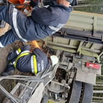 Durch den Einsatzleiter HBI Mario Katterbauer (FF Gr.Reinprechts) wurde im Zuge der Erkundung sofort der mobile Kran (der bei der FF Krems stationiert ist) angefordert um die Bergung so schonend wie möglich durchzuführen. Als erstes wurde der neue Asphaltfertiger vom vom Tieflader gehoben. Gleichzeitig zogen wir mit der Seilwinde von Tank Gr.Reinprechts den Tieflader gerade um Platz zu schaffen. Im Anschluss wurde das Gespann mittels Kran und Seilwinde wieder aufgestellt und der Tieflader abgekoppelt. Danach wurden beide Fahrzeuge zum Verladen fertig gemacht. Der gesamte Einsatz dauerte um die 7 Stunden und die L76 war in diesem Bereich vollständig gesperrt.