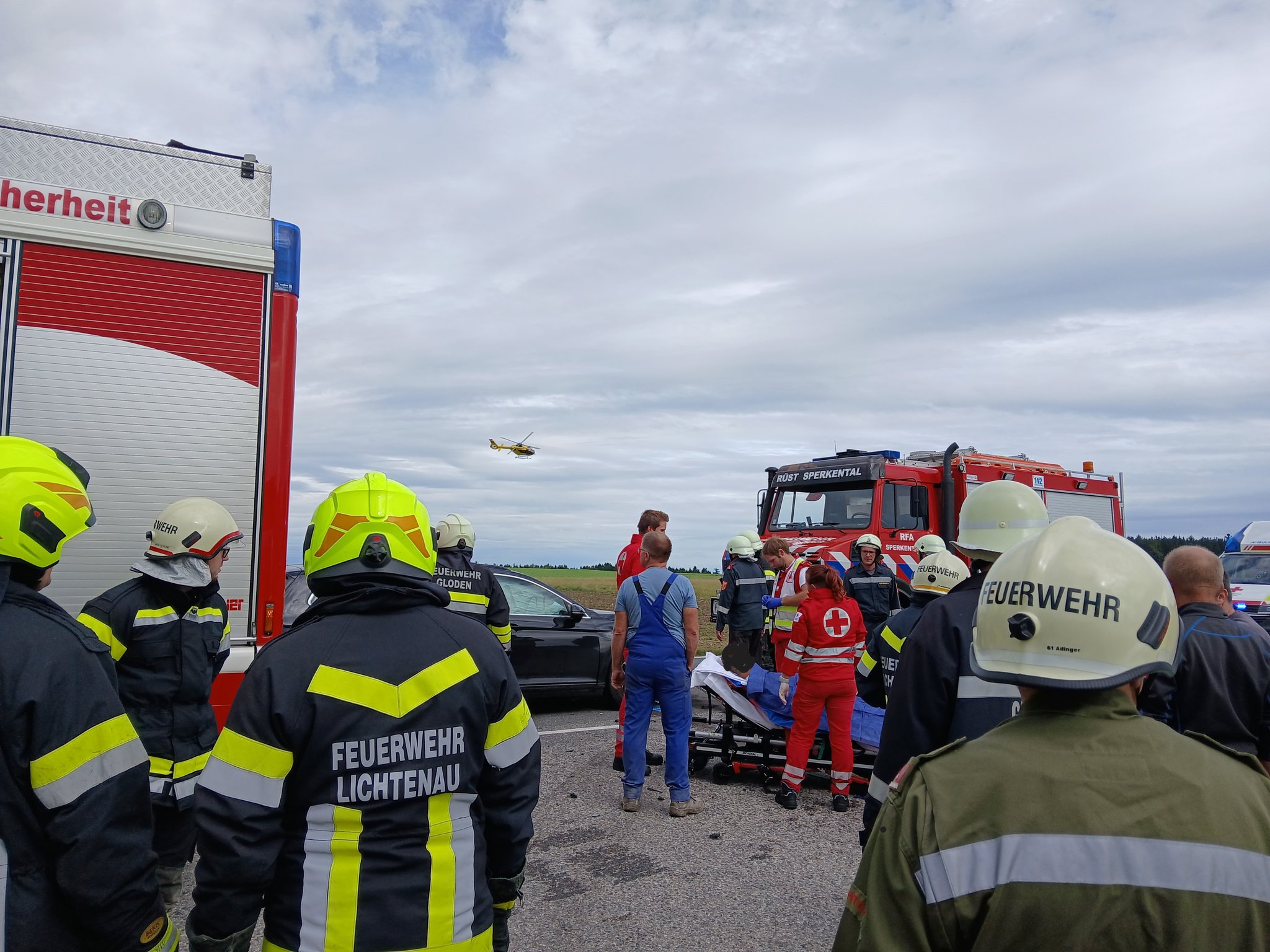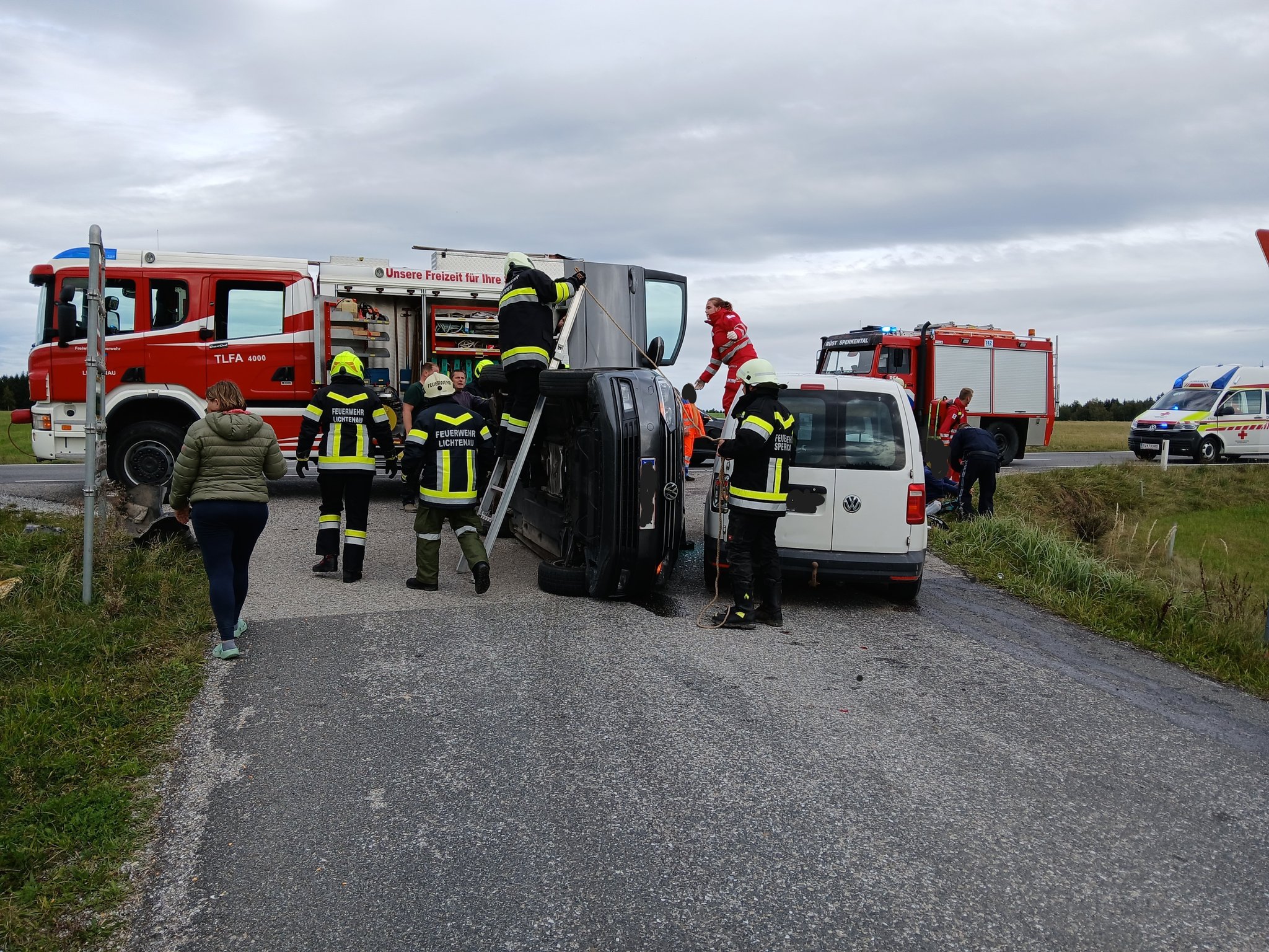 Am Donnerstag dem 26.09.24 wurden wir um 11:33 Uhr zu einem "T2" Verkehrsunfall mit Eingeklemmter Person auf die L76, Kreuzung Gloden Alarmiert. Beim Eintreffen unserer Feuerwehr waren drei PKW beteiligt, wobei ein PKW auf der Fahrerseite lag und sich der Fahrer nicht mehr selbstständig befreien konnte. Der Fahrer wurde durch die Feuerwehr über den Kofferraum des Fahrzeuges befreit und konnte den Rettungskräften übergeben werden. Alle drei Fahrzeugführer wurden Unbestimmten Grades verletzt ins Krankenhaus eingeliefert. Danke an alle 4 Eingesetzten Feuerwehren (FF Gloden, FF Gr.Reinprechts, FF Lichtenau, FF Sperkental), das Rote Kreuz, Christophorus2 und die Polizei.