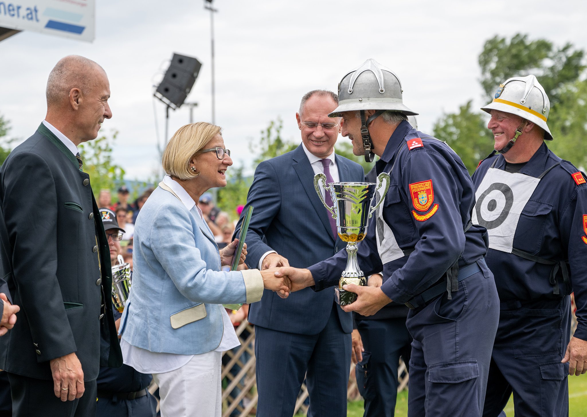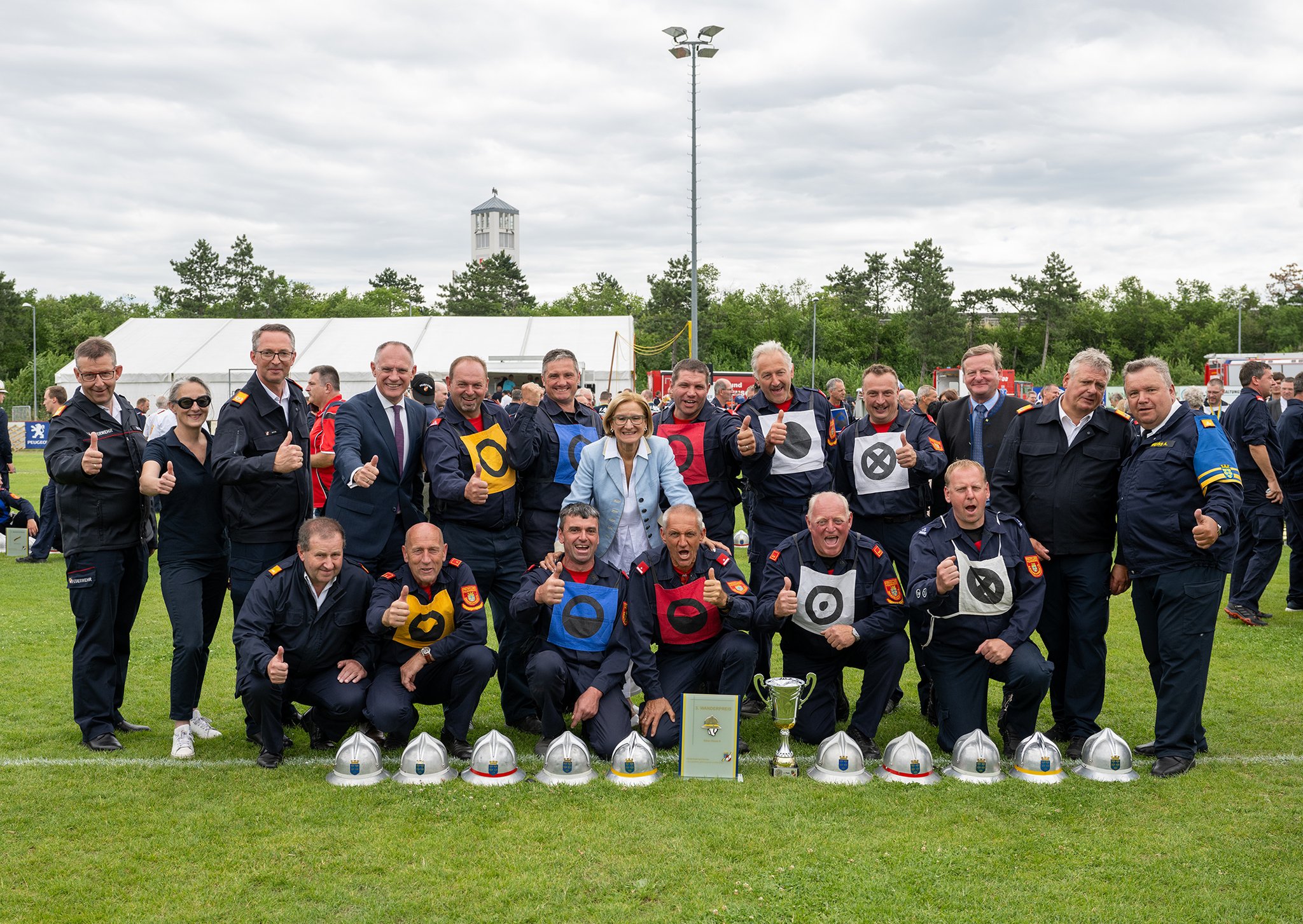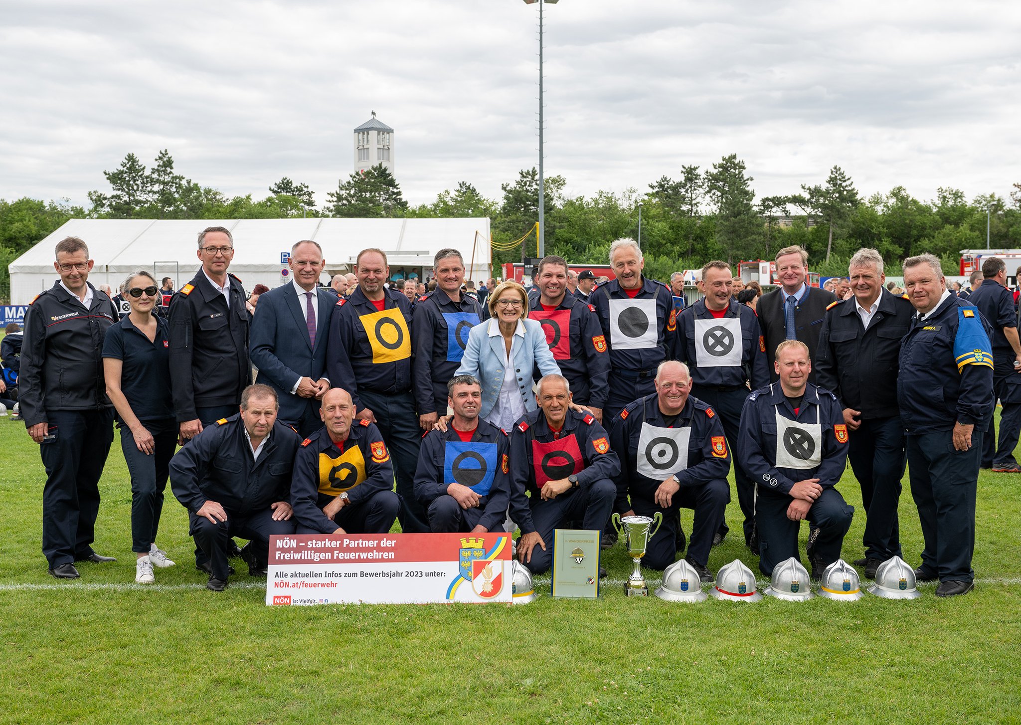 Beim niederösterreichischen Landesfeuerwehrleistungsbewerb in Leobersdorf belohnte sich die FF Großreinprechts führ mehrere Spitzenleistungen mit zwei Pokalen. Von 30. Juni bis 2. Juli 2023 fand in Leobersdorf die diesjährige Auflage des niederösterreichischen Landesfeuerwehrleistungsbewerbs statt. Dabei war auch die FF Großreinprechts mit einer Mannschaft vertreten, die bei diesen Bewerben bereits mehrere Male Spitzenplätze erreicht hat. In der Bewerbswertung „Bronze mit Alterspunkten“ gelang den Großreinprechtsern zwar eine gute Zeit. Allerdings war nach einem unglücklichen Fehler rasch klar, dass es für eine absolute Topplatzierung nicht reichen würde. Dementsprechend musste die FF Großreinprechts die Kohlen in der Bewerbswertung „Silber mit Alterspunkten“ aus dem Feuer holen. Die Silberwertung – ohnehin die bessere Disziplin der Großreinprechtser – lief hervorragend: So leisteten sich die Florianis keine Fehler und beendeten den Löschangriff mit einer Zeit von 44,09 Sekunden. Bis zum späten Nachmittag führte die FF Großreinprechts die Wertung sogar an. Am Ende des Bewerbs bedeutete diese Leistung immerhin den starken dritten Platz. Dieses Ergebnis wurde nicht nur mit einem Pokal prämiert – die FF Großreinprechts durfte sich sogar über einen zusätzlichen Wanderpokal freuen. Gleichzeitig mit diesem Ergebnis gelang den Großreinprechtser Florianis auch die Qualifikation für den nächstjährigen Bundesfeuerwehrleistungsbewerb, der in Voralberg über die Bühne gehen wird. Auch auf Ebene des Bundesbewerbs ist die Mannschaft der FF Großreinprechts bereits erprobt – so war sie dort bereits zwei Mal erfolgreich vertreten. Am Samstagabend fand mit dem Fire-Cup schließlich das krönende Finale des LFLB statt, bei dem die besten zehn Feuerwehrmannschaften Niederösterreichs gegeneinander antreten. Die FF Großreinprechts hatte sich auch für den Fire-Cup in der Wertung „Bronze mit Alterspunkten“ qualifiziert und erkämpfte dort den guten fünften Platz. Bei der Siegerehrung am Sonntag durfte sich die FF Großreinprechts somit über mehrere Spitzenergebnisse und zwei Pokale freuen. Zu den Gratulanten gehörten nicht nur Landesfeuerwehrkommandant Dietmar Fahrafellner und sein Stellvertreter Martin Boyer (ebenfalls gebürtiger Großreinprechtser) sondern auch Landeshauptfrau Johanna Mikl-Leitner und Innenminister Gerhard Karner.