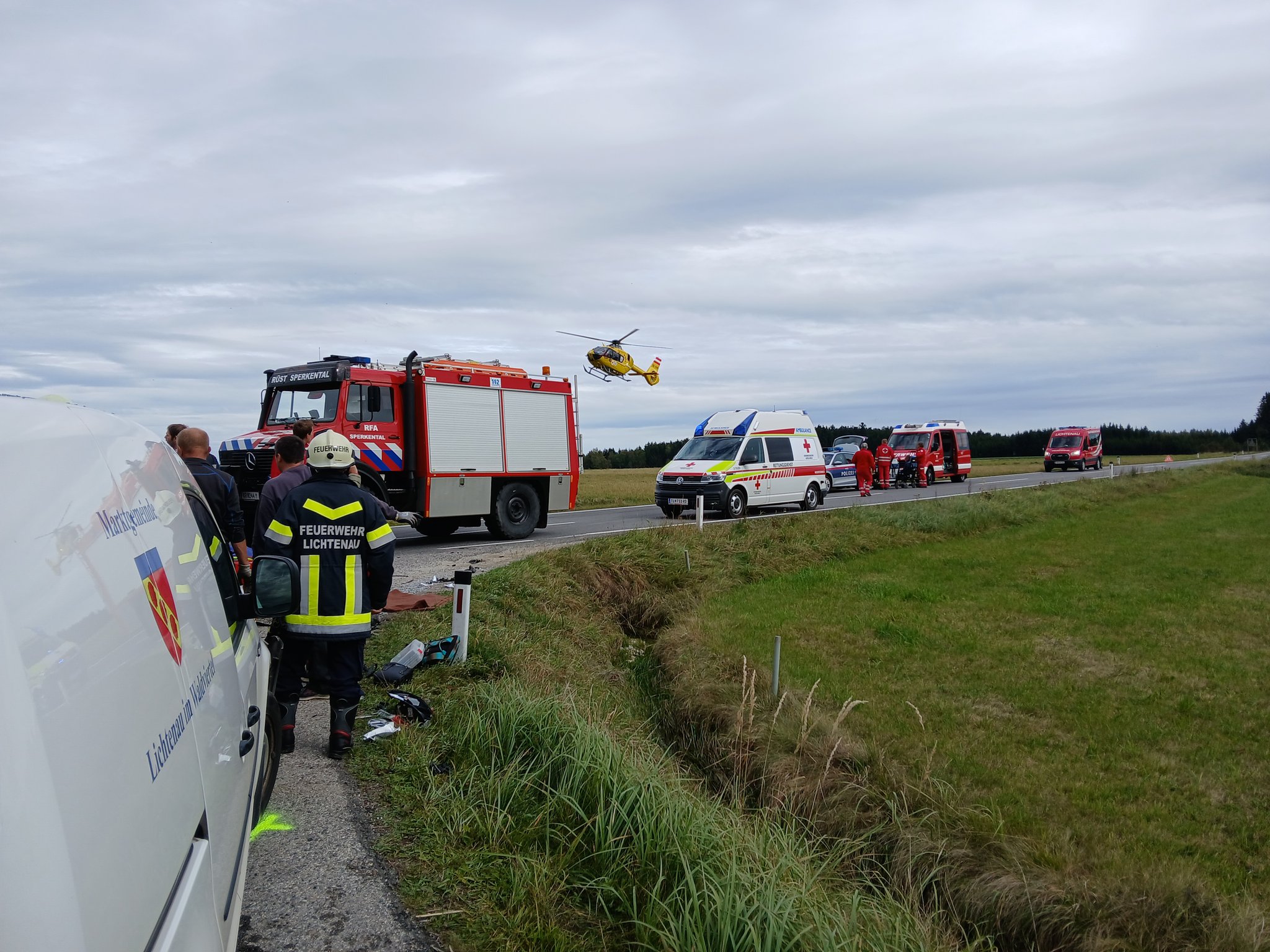 Am 03.September 2024 wurden wir zu eine T1 Verkehrsunfall auf der L76 Grainbrunn Richtung Allentsgschwendt alarmiert. Ein Motorradfahrer kam von der Straße ab und überschlug sich mehrmals.