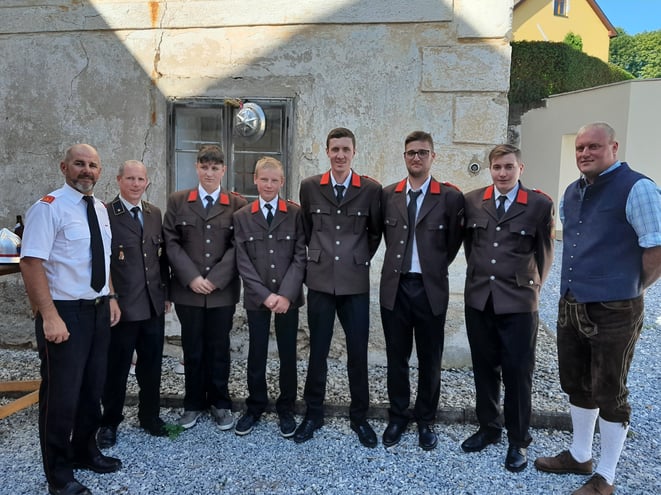 Kommandant HBI Mario Katterbauer, LdV V Thomas Klemmer, PFM Martin Allinger, PFM Paul Gafgo, PFM Markus Öhlzelt, PFM Dominik Fasching, PFM Florian Starkl und KDTSTV BI Andreas Donabaum